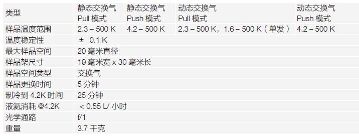 樣品溫度范圍                2 .3 – 500 K 4.2 – 500 K