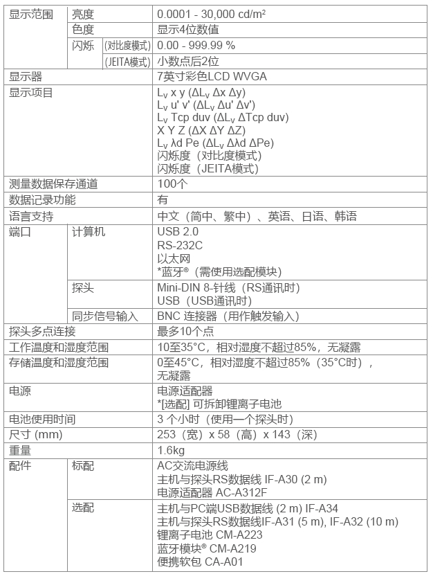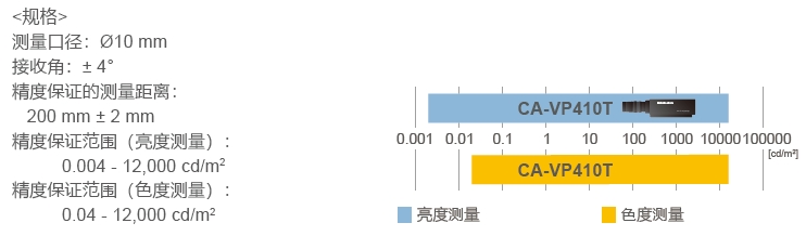 進階版高靈敏度探頭CA-VP427A和CA-VP410A作為系列新產品,從0.0003cd/m2的超低亮度開始,保證精度范圍。