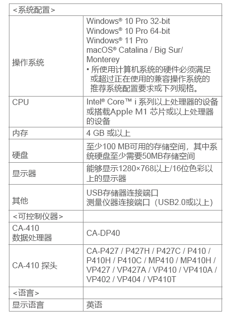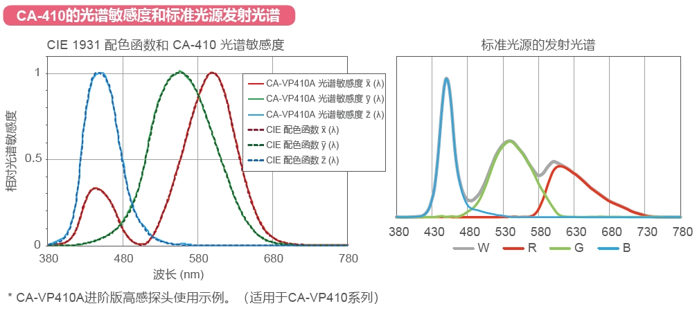*還有匹配*新配色函數曲線CIE 170-2:2015 2度標準觀察者的CA-P427C/P410C探頭可選。