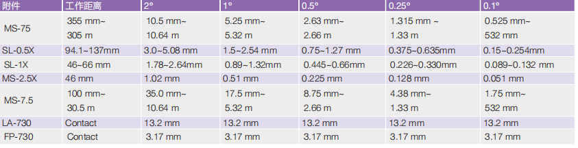 備注:亮度值均是在 2°光闌,PR-730/740:8nm 光譜寬度 , PR-735/745: 14nm 光譜寬度條件下計算得出。