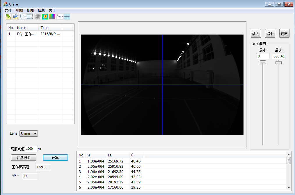 Glare眩光測量軟件現(xiàn)場測試數(shù)據(jù)