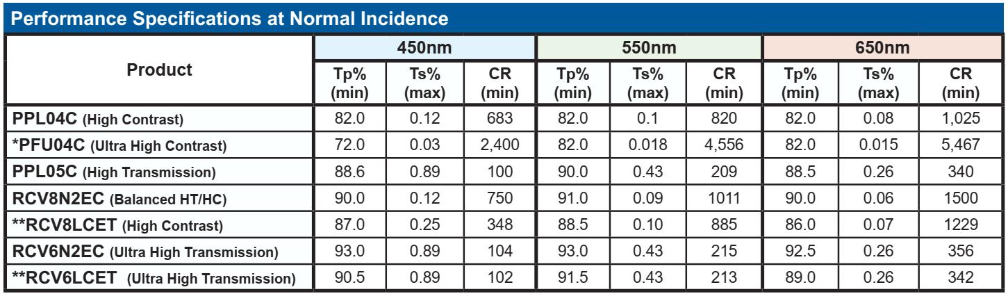 偏振片選型對比工具:https://compare.moxtek.com/iframe