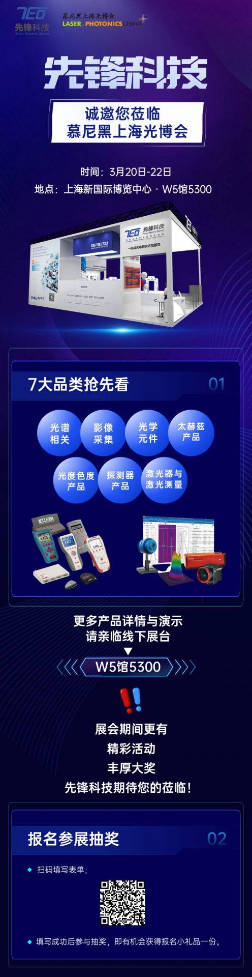 展品涵蓋光譜產(chǎn)品、紅外相機、像增強器、手持式光譜亮度計、激光光束測量儀、波長計、激光功率能量計表頭、探頭、X射線探測器、黑硅探測器、氣體傳感器等熱門產(chǎn)品,屆時歡迎新老朋友蒞臨先鋒科技展位【W(wǎng)5館5300】參觀交流。