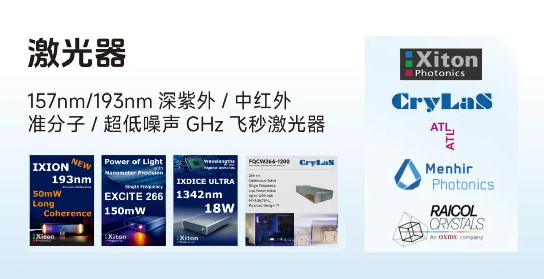 同時激光器展區(qū)展出美國Quantel-Bigsky、瑞士 Menhir Photonics、美國 Pacific Lasertec、德國 ATL Lasertech、Raicol、法國 Quantel、美國 OPOTEK、英國 Skylark Lasers、英國Laser Quantum等合作品牌,展示 157nm/193nm 深紫外、中紅外、準(zhǔn)分子、超低噪聲 GHz 飛秒激光器等核心產(chǎn)品,廣泛應(yīng)用于高端制造、激光加工、半導(dǎo)體工藝等領(lǐng)域。