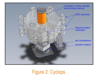 基于Orient-Express的成功,升級版的Cyclops被搭建出來。它由16個雙倍高度八邊形排列的相機組成。使相機聚焦在圓柱閃爍體上,并將樣品置于圓柱體中心。保證留出足夠大的樣品空間的同時又能夠容納各種樣品環(huán)境控制設(shè)備。